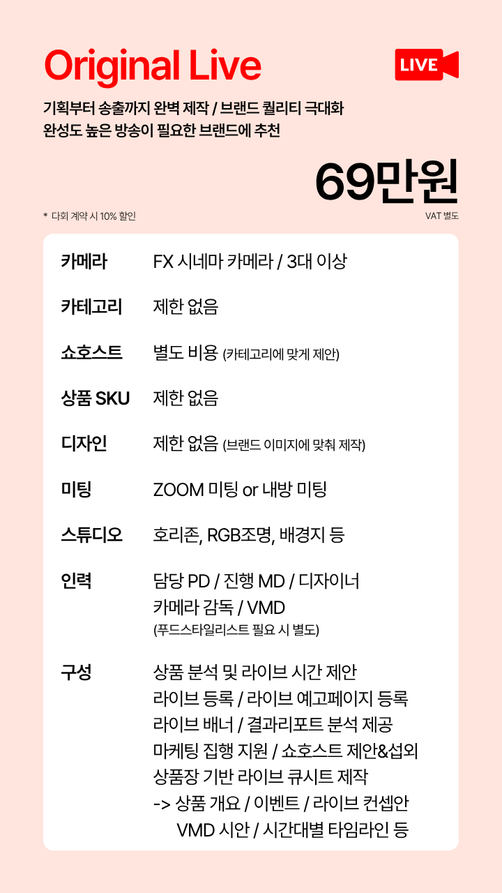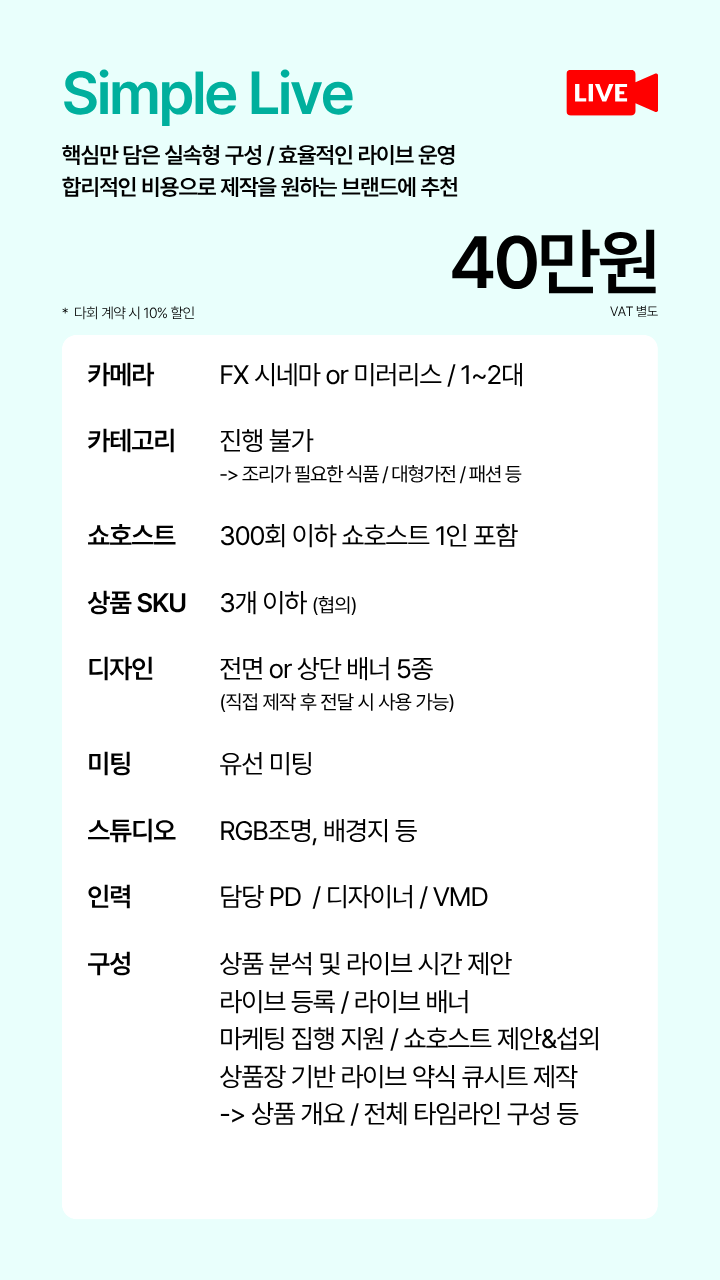 불필요한 인건비나 외주 비용 없이 고퀄리티의 방송을 제공합니다.