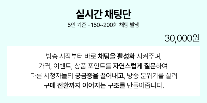 라이브커머스 기획부터, 디자인, 진행, 송출 및 마케팅까지 전 과정을 운영합니다.